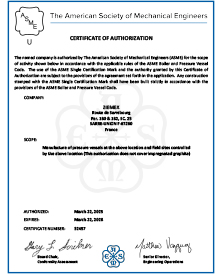Certification ASME – U Stamp (N° de certificat : 32,457)