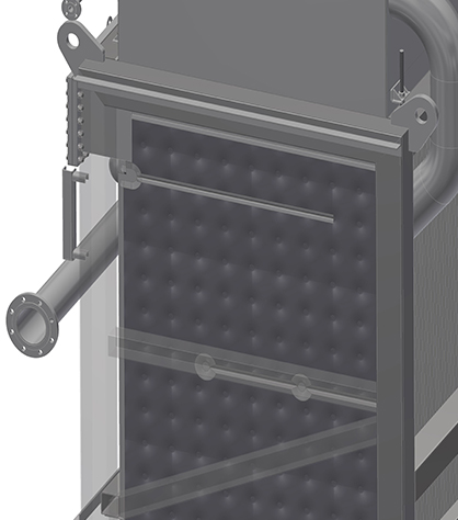 Grâce à un chicanage final breveté, les gaz sont accélérés et les zones mortes supprimées, garantissant une condensation optimale.