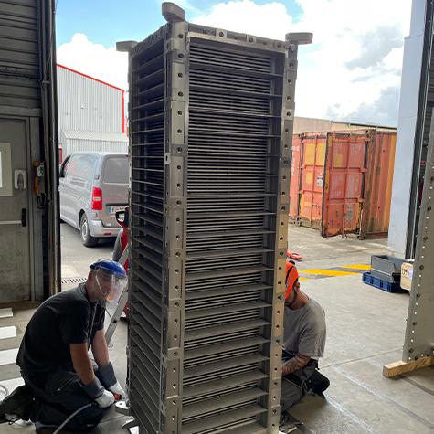 Conçu pour traiter des fluides encrassants, l’échangeur intègre un écartement de 8 mm sur chaque circuit et un chicanage interne sur mesure garantissant une vitesse de circulation élevée et limitant significativement les dépôts.