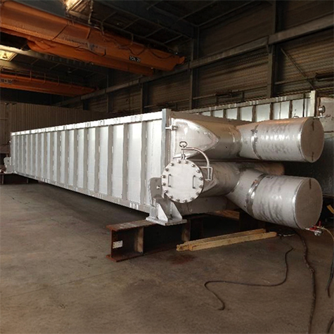 L’échangeur a été réalisé en 904L avec des tôles d’épaisseur 0.8mm, garantissant une résistance optimale à la corrosion tout en maintenant des performances thermiques maximales. Le design permet également l’inspection et l’entretien grâce à des trous d’homme intégrés dans les collecteurs, facilitant le contrôle et le nettoyage sans démontage complet.