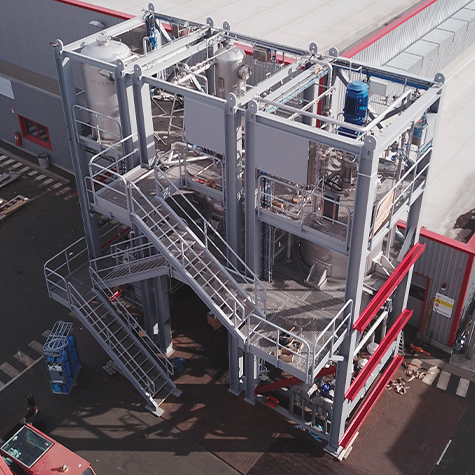 - Les skids réactionnels ou micro-réacteurs intègrent la régulation thermique des réacteurs ou cristaliseurs, la distillation, la décantation ou la condensation, suivant les exigences du process.