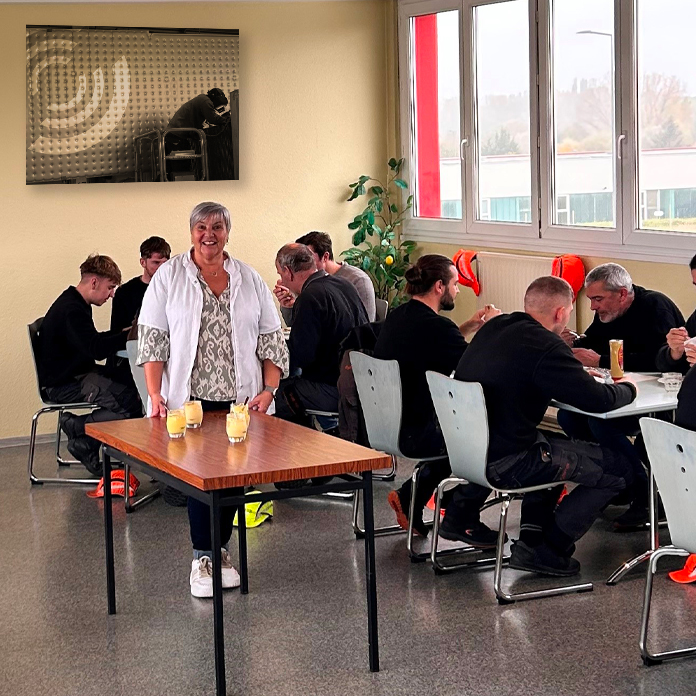 Chez ZIEMEX, la pause déjeuner est un moment de convivialité, et les repas sont servis à table, dans une ambiance détendue.
