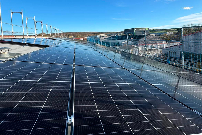 couvrant environ 6 % des besoins énergétiques du site et réduisant les émissions de CO₂ d’environ 4 tonnes par an, sur les pans de toiture de nos ateliers.
